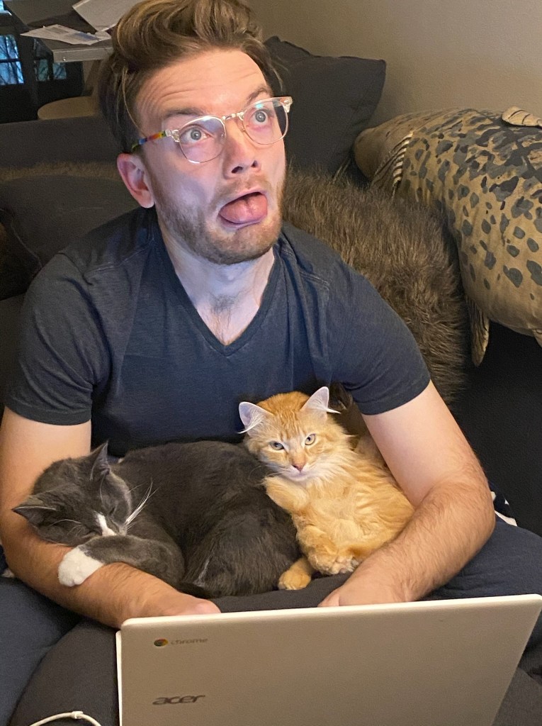 This might not be Zach’s most flattering photo, but it is (somehow) his best. Plus it features Dante, in orange, and Snorkel, in tuxedo.